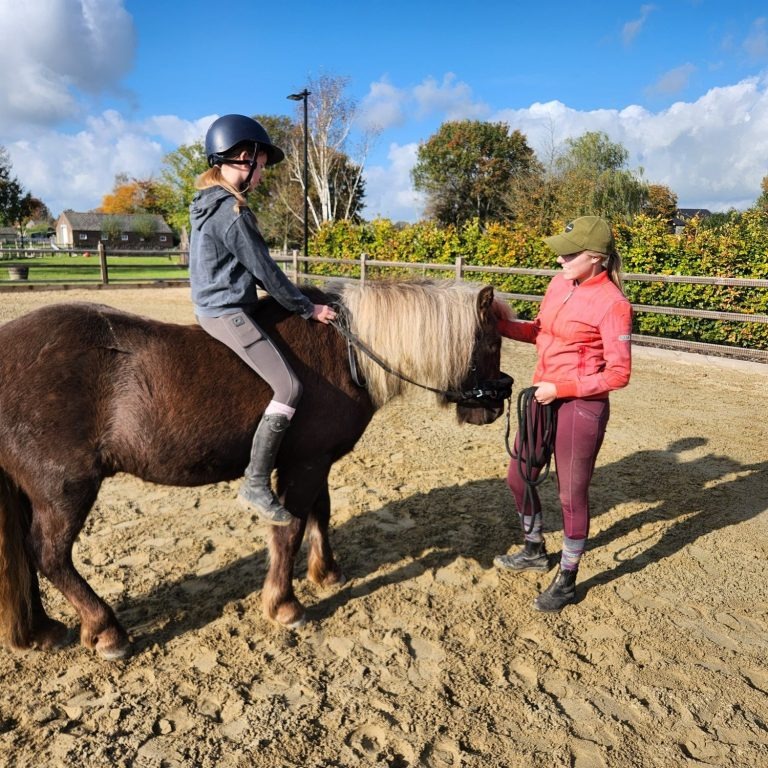 Begeleiding bij het rustig en correct leren opstappen, zodat paard en ruiter zich ontspannen en zeker voelen. Zo kan ik je bijvoorbeeld leren hoe je paard zich netjes inparkeert bij het krukje!